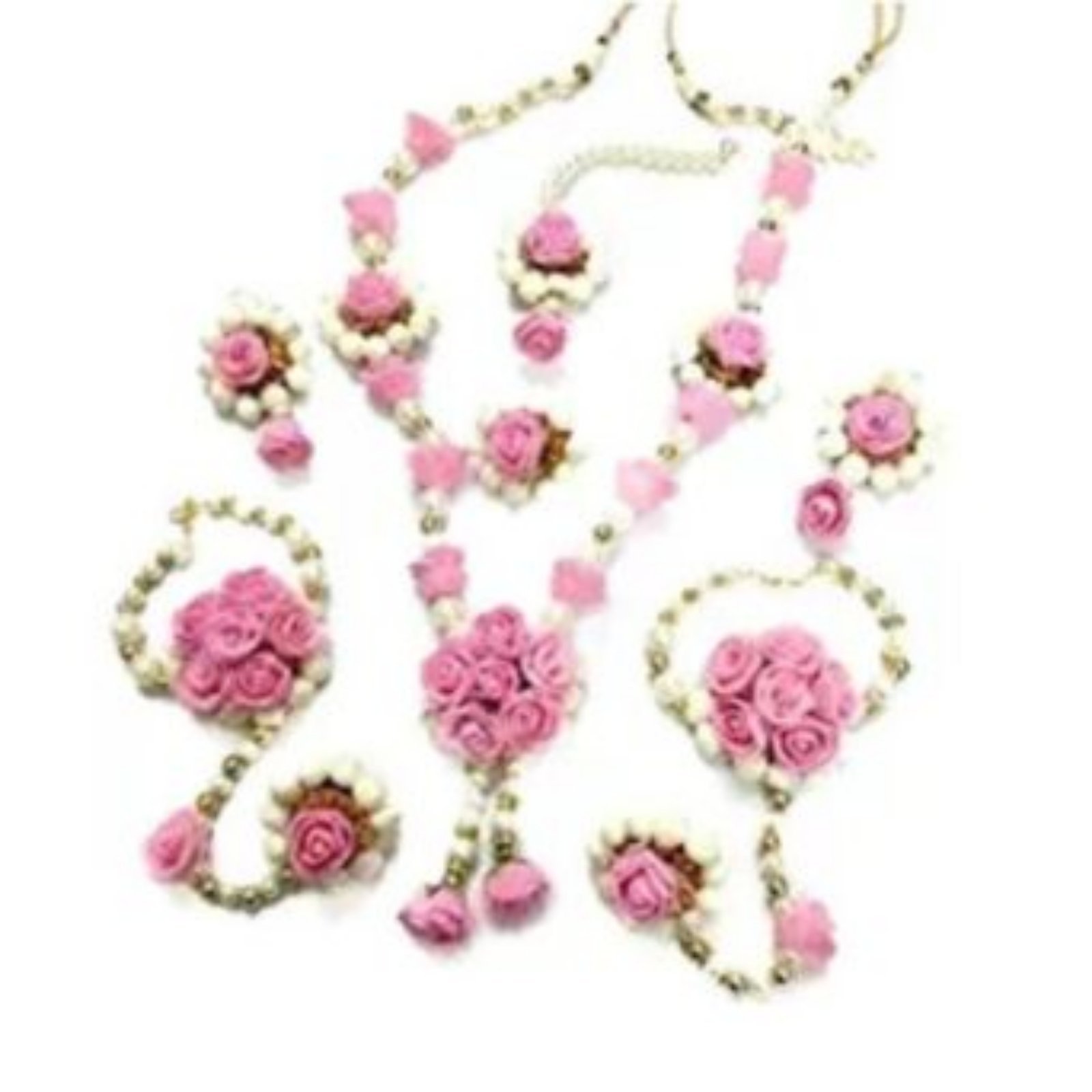 real Pink Flower jewellery for Haldi mehandi sangeet