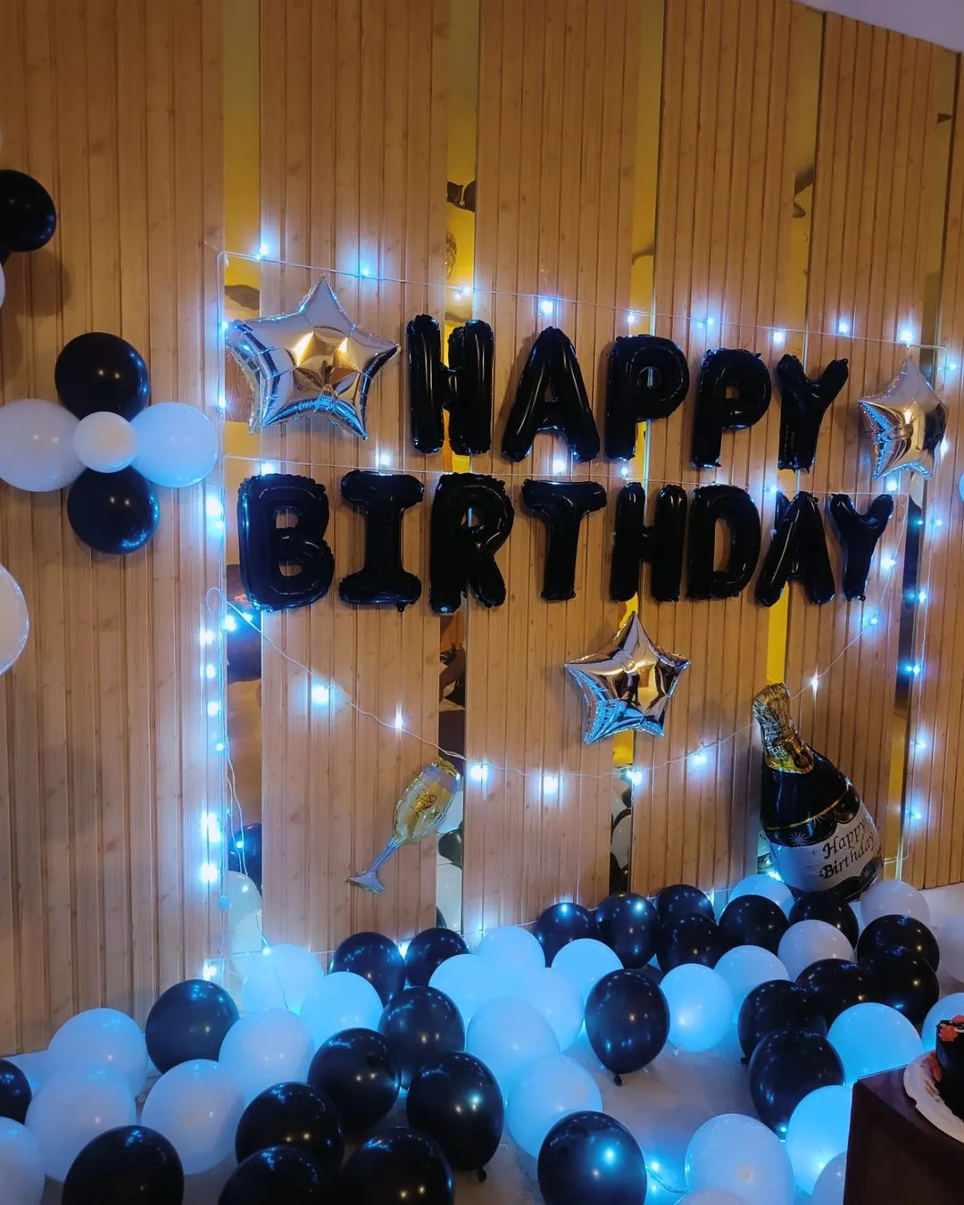To complete the birthday decoration with black and white balloons, integrate complementary elements such as table settings, floral arrangements, and lighting. Candles, fairy lights, and elegant tableware can enhance the overall aesthetic, creating a cohesive and inviting environment for your guests.