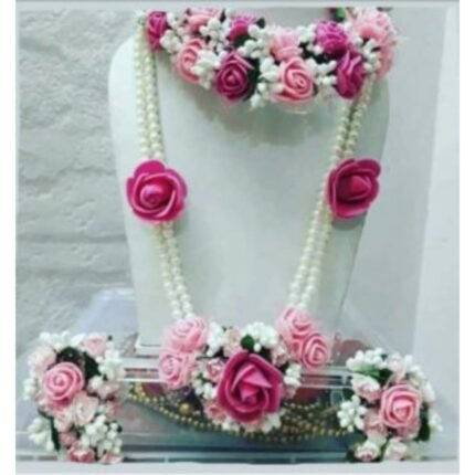 Pink Flower Jewellery for Wedding Haldi mehandi