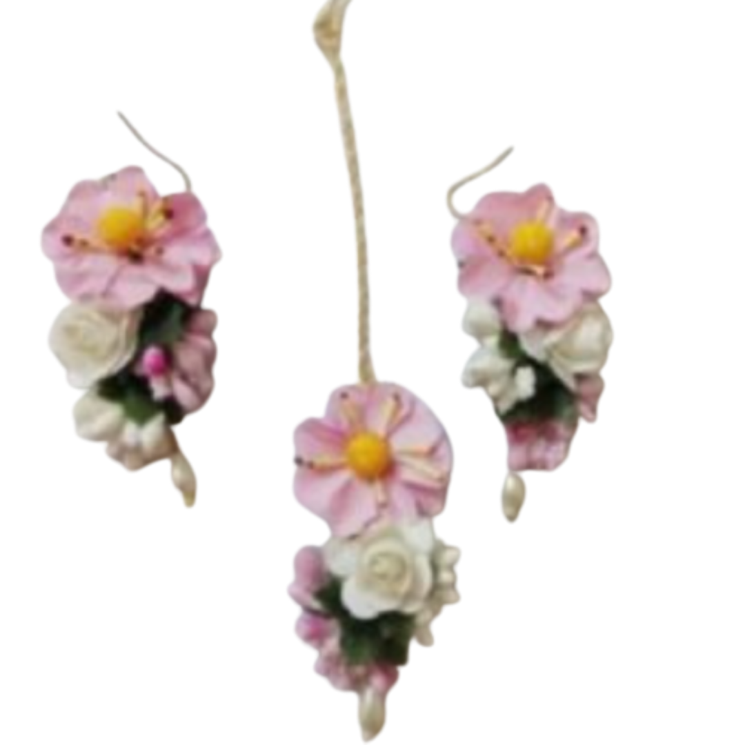 Pink Flower Earrings n Mang tika