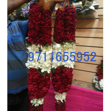 Simple red n white flower jaimala garland Varmala for Marriage, white and red roses jaimala for wedding or wedding anniversary